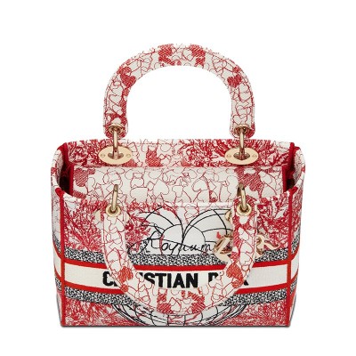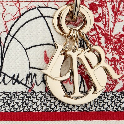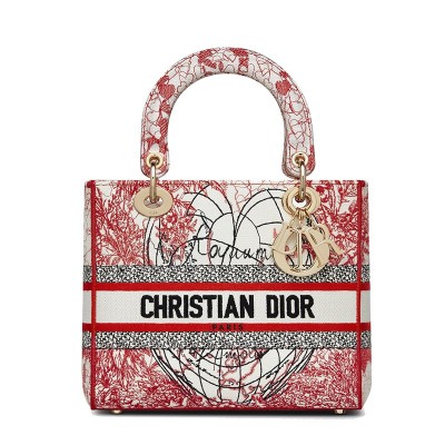 DIOR/迪奥 21秋冬新款 LADY D-LITE系列 女士中号红/白D-Royaume d'Amour刺绣织物单肩斜挎手提戴妃包M0565ORHT_M927